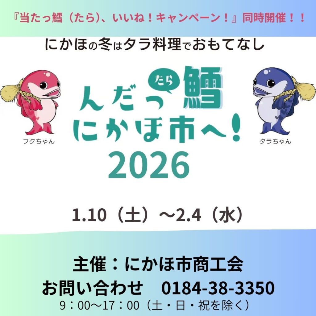 アンケートにお答えいただくと「豪華!にかほの寒鱈セット」が5名様に当たる抽選会を実施🎁