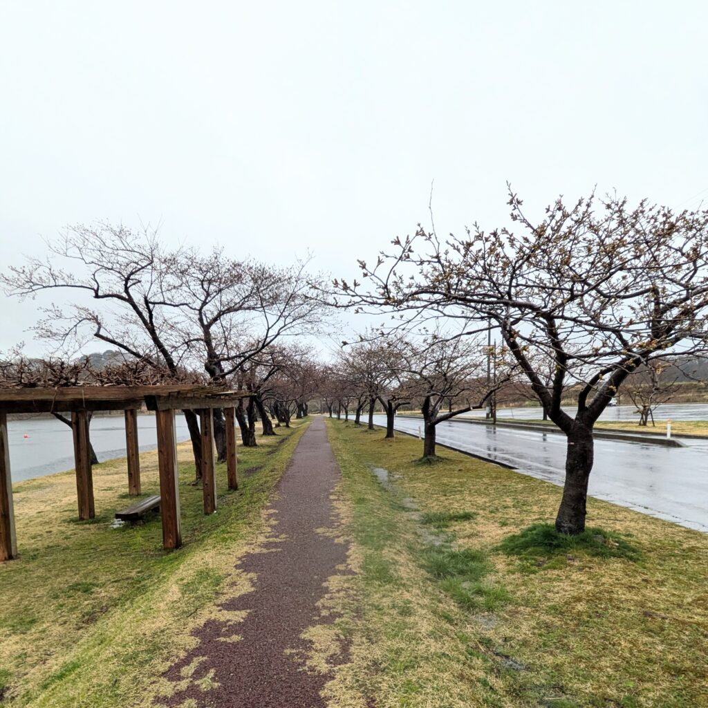天気はくもり、風が冷たく肌寒いです。