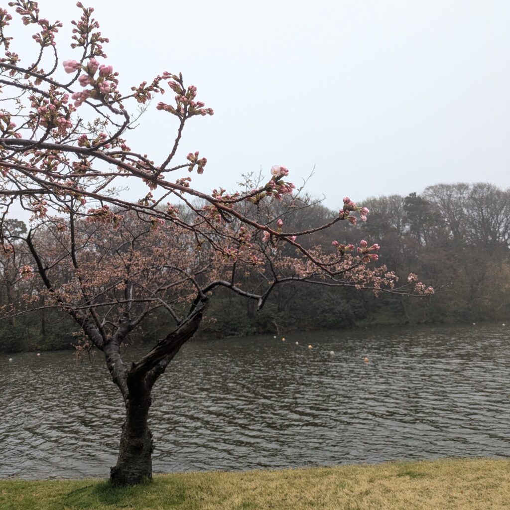 くもり空の朝となりましたが、園内では朝早くから桜を楽しむ方々の姿が見られました。