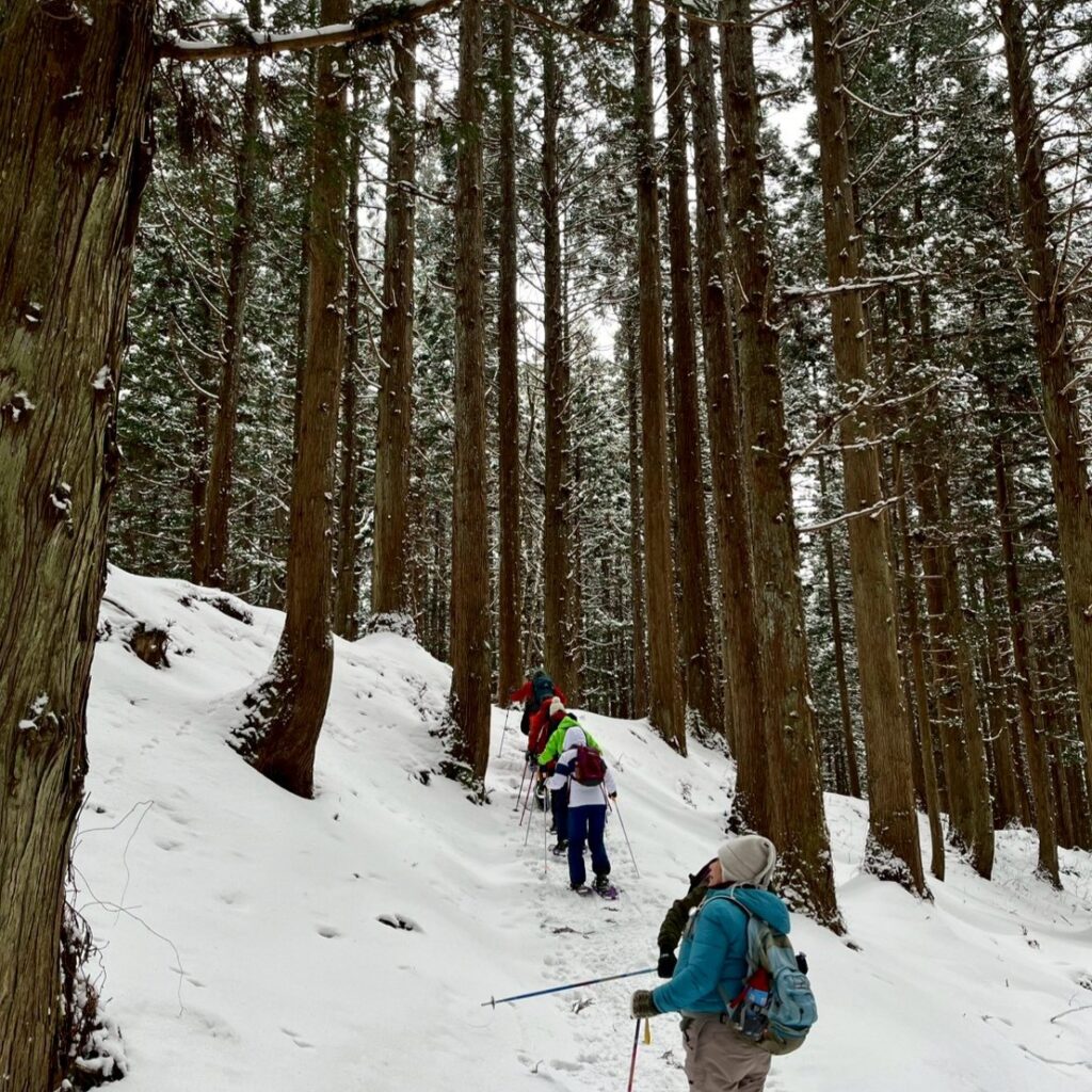 準備:防寒着(帽子・手袋)、防寒靴、飲み物、スノーシュー、ストック