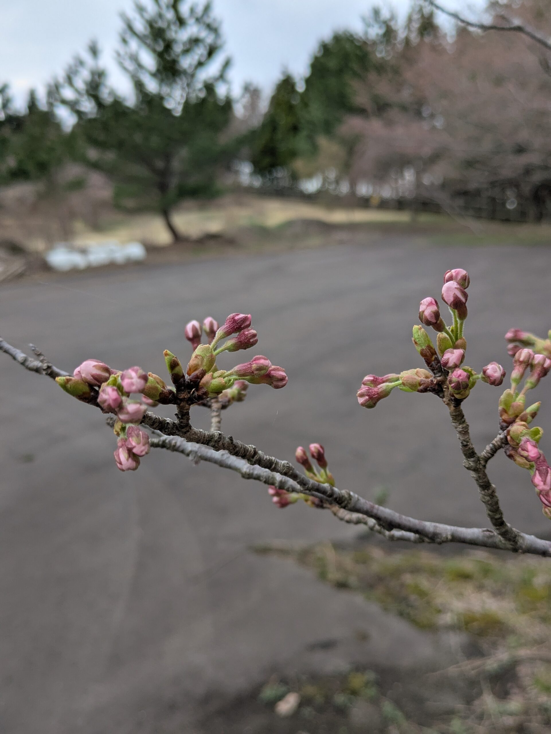 左から、勢至公園(標準木):つぼみ勢至公園(観音潟):つぼみ南極公園(竹嶋潟):つぼみ